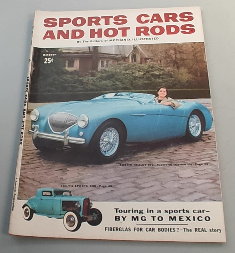 Sports Cars And Hot Rods By The Editors of MECHANIX ILLUSTRATED. The cover features a young Barbara Walters sitting in an Austin Healey 100. Prior to becoming a noteworthy broadcaster, she agreed to pose for the ad, which she was happy to do. Barbara Walters admitted on "The View" that at the time she couldn't drive, and that she had never driven. She didn't even have a driver's license, carrying only an ID throughout her life.